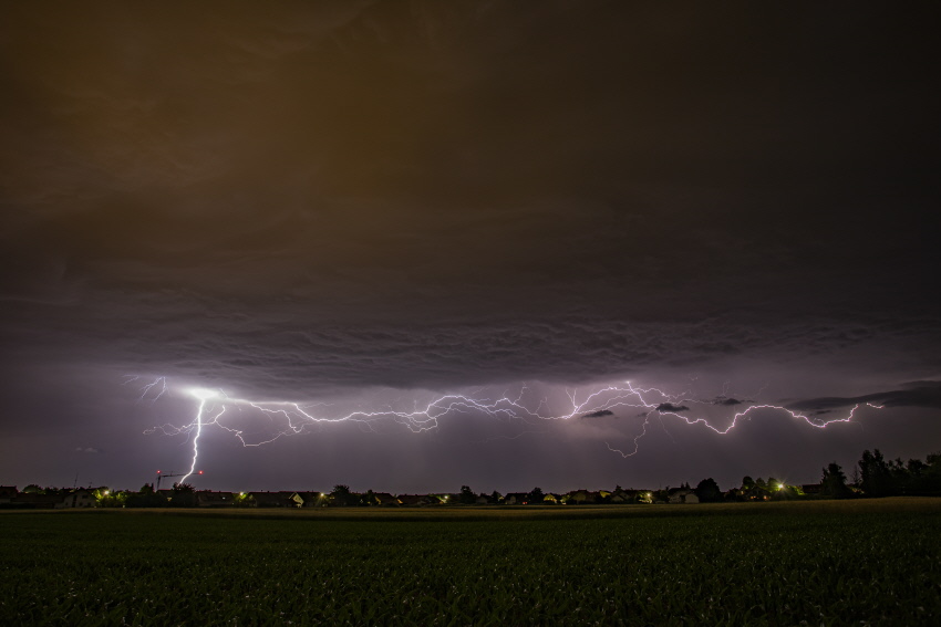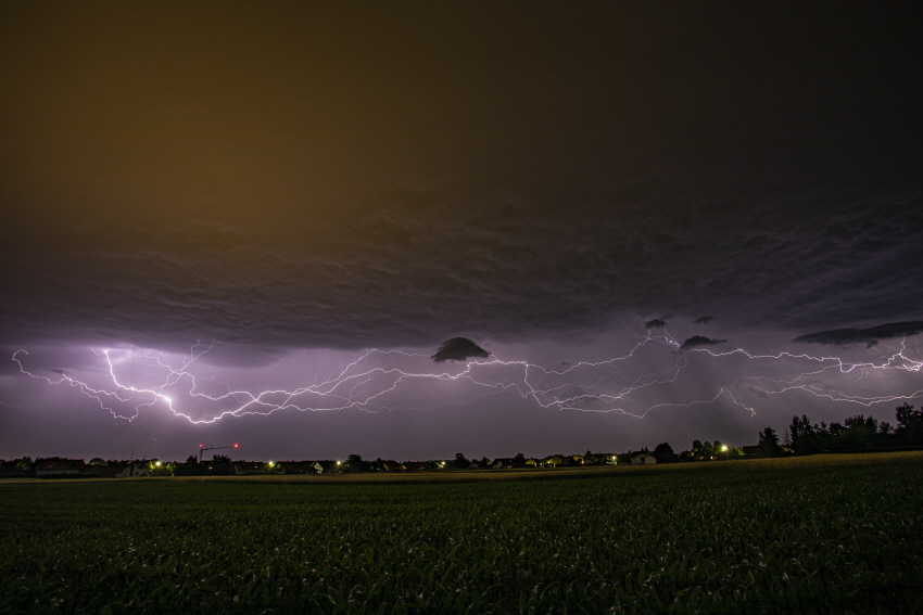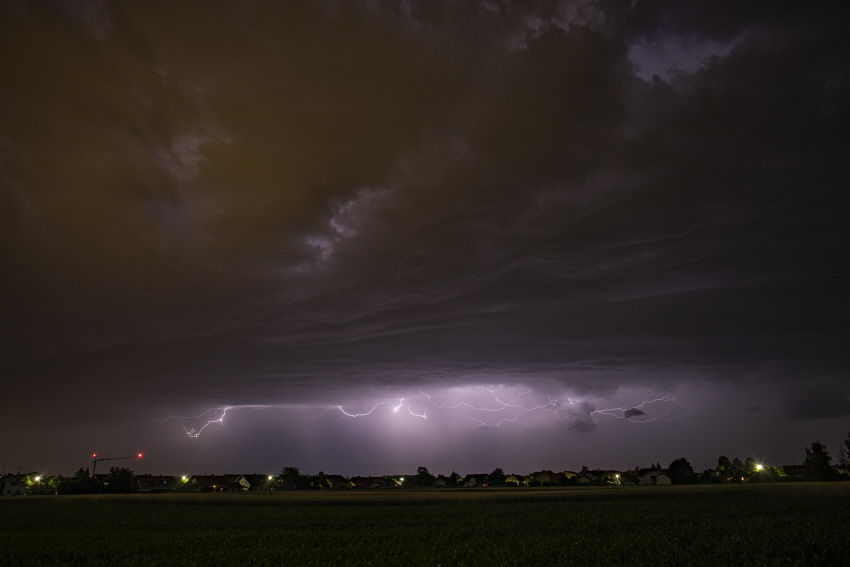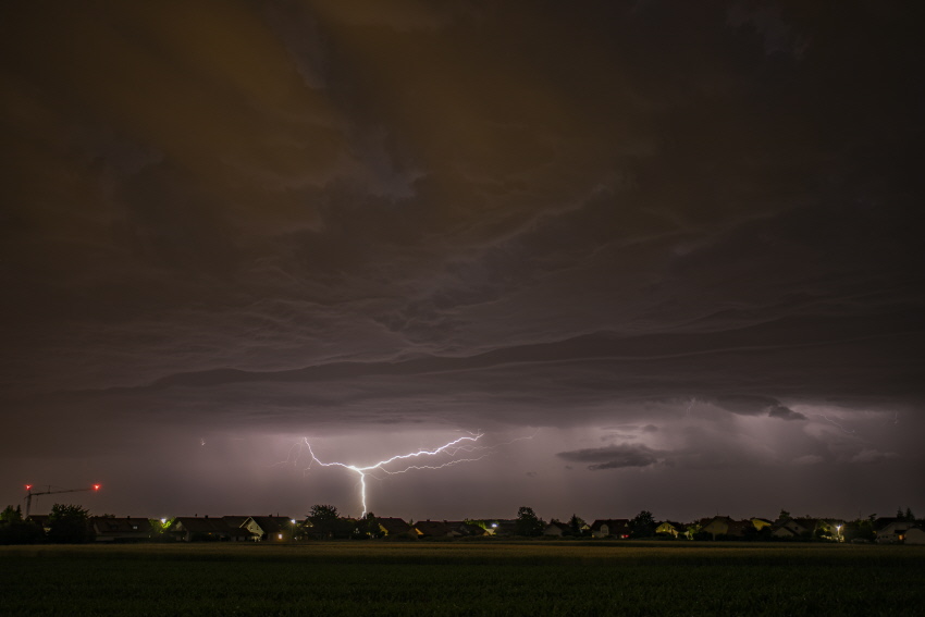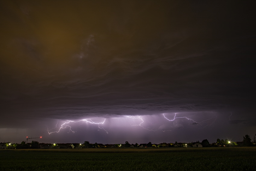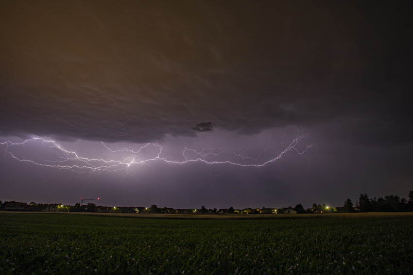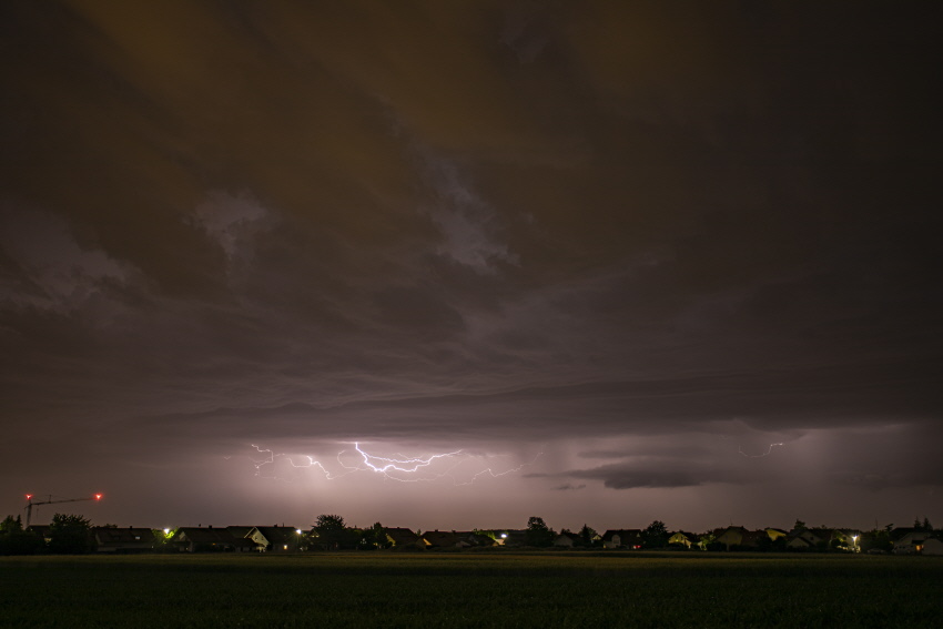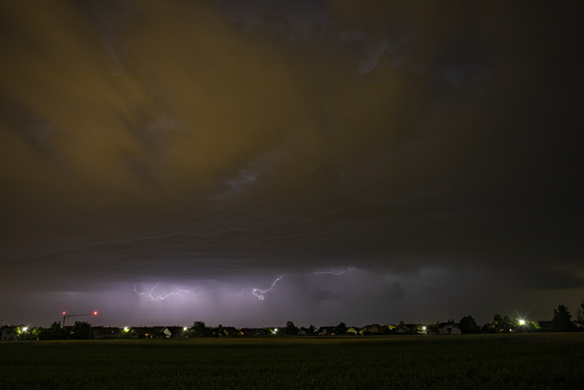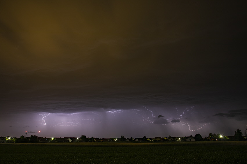Blitze am Abend des 20.Juni. Eine Gewitterfront aus Südwest brachte einige schöne Blitze aber nur etwas Regen.