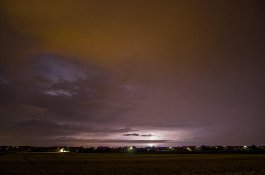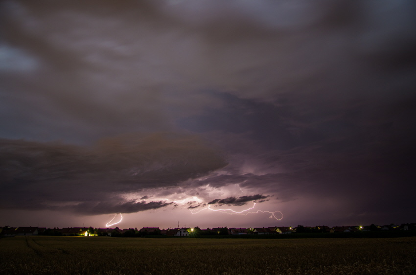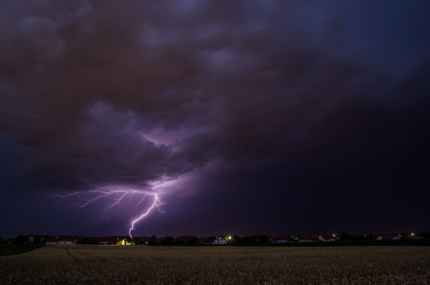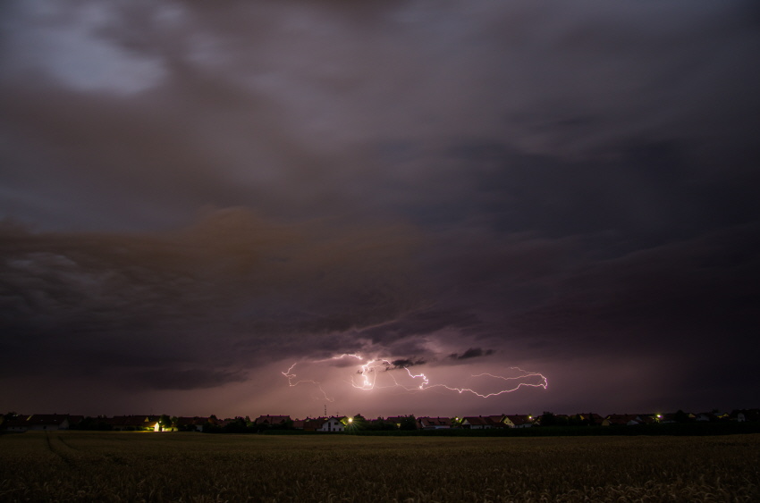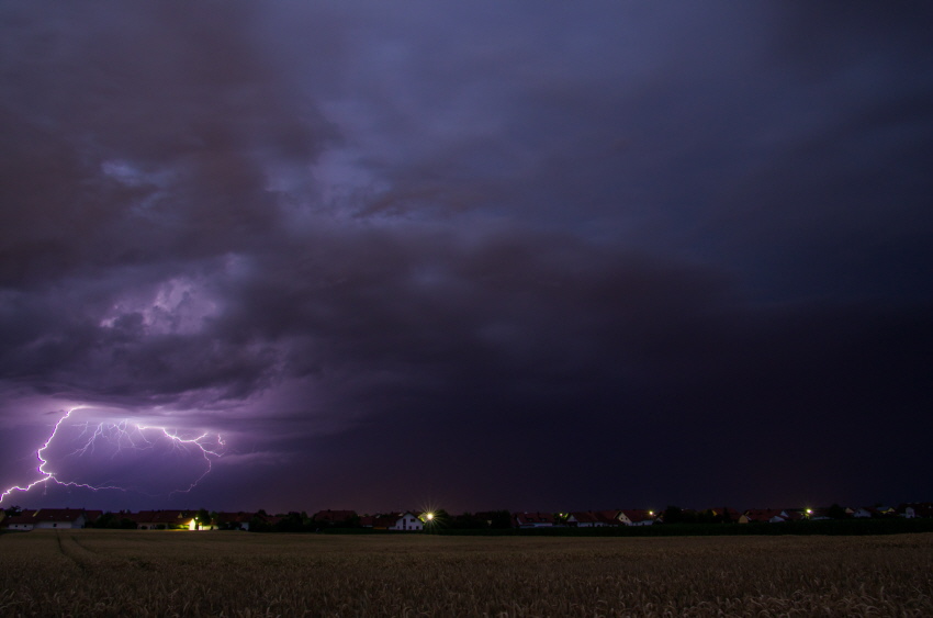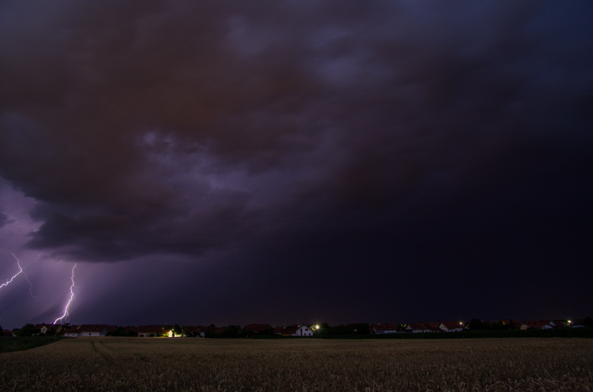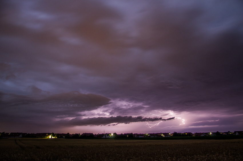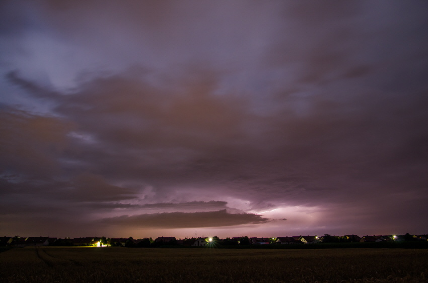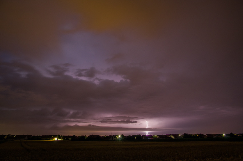 Also dieses Jahr war ja bei uns bis jetzt gewittertechnisch so gar nix geboten, tagsüber wie nachts, da dürften manche schon ganz schön enttäuscht sein^^ Dieses Wochenende machte die Wettervorhersage auch wieder mal Hoffnung, wie so oft kam dann gar nix! Für den Sonntag war auch nur für den Westen Bayerns in der Nacht was vorhergesagt. Bis kurz vor Mitternacht hab ich dann die Radarbilder beobachtet gab dann aber natürlich auf. So gegen 3Uhr in der Nacht weckte mich dann ein starker Wind^^ Das Radarbild zeigte dann doch überraschenderweise ein mit Gewittern durchsetzten Regenbatzen der tatsächlich auf uns zuzog. Unglaublich!!! ^^ So um halb 4Uhr wurde es dann interessant ^^ War eh klar das die kleine Linie am vorderen Ende seine Blitzaktivität vor Eintreffen einstellte..... wenn mal der Wurm drin is dachte ich, wenigstens waren schon ein paar Blitzbilder auf der Karte ^^ Wolken im Vordergrund versprachen aber doch noch die Möglichkeit der Bildung einer kleinen Gewitterzelle! So kam es dann auch, und es gab dann noch etwa fünf wunderbare Blitzschläge die alle auf die Speicherkarte wanderten ^^ Nach ner dreiviertelstunde also so um kurz nach 4 packte ich wieder zusammen weil es war ja Montag, aber wer schöne Bilder haben will muss eben manchmal leiden ^^