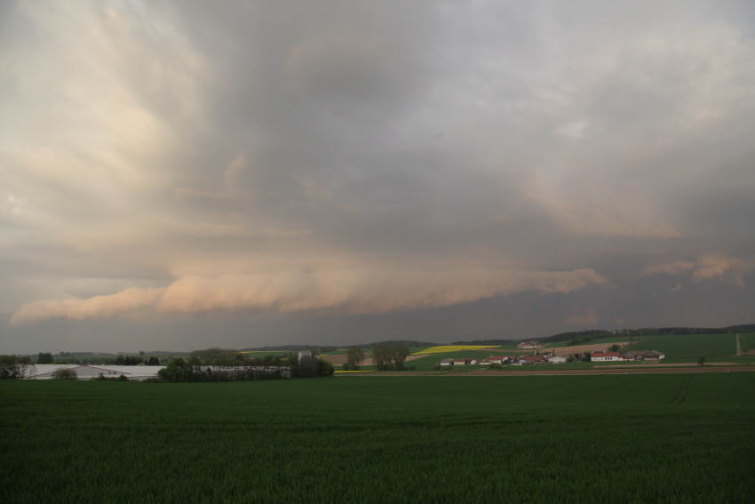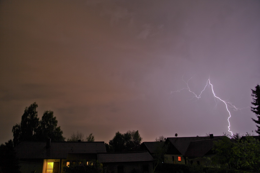 Am letzten Montag also am 6.Mai gabs am Nachmittag zunächst bei Altötting in Südostbayern einen ordentlichen Gewitterherd. Der zog aber ned in unsere Richtung. Es gab zwar ein paar kleinere Gewitter im Bayerwald und Richtung Passau aber die Hoffnung hatte ich schon fast aufgegeben. Doch gegen Abend so um halb Acht hat sich das ganze doch noch überraschenderweise verstärkt und zu einer schönen Front ausgebaut ^^ Es gab kleinere Überschwemmungen im südlichen Landkreis wegen des doch starken Niederschlags aber nix dramatisches.