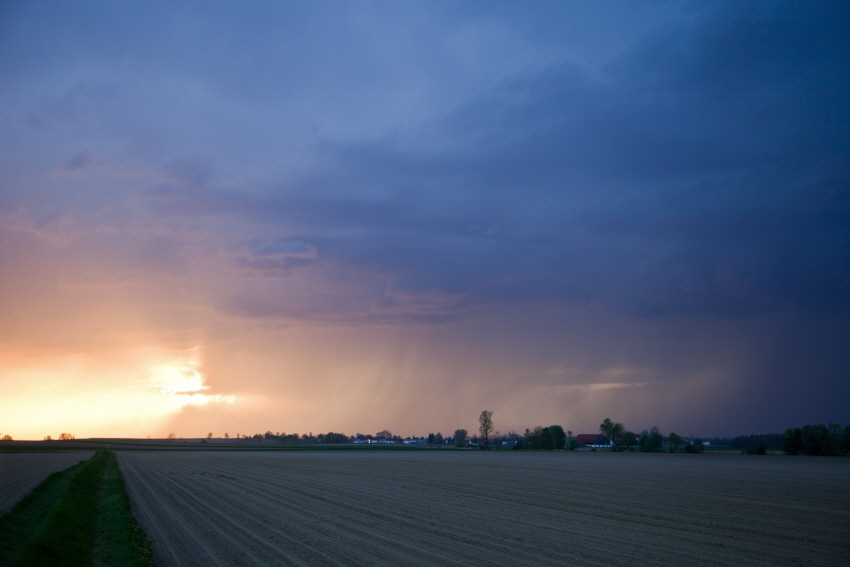 Das erste Unwetter dieser noch jungen Gewittersaison suchte die Region Niederbayern diesmal schon am 27.04. heim. Der April macht auch dieses Mal was er will, und gestaltet das Wetter das sehr wechselhaft. Auch an diesem Tag schien zunächst noch die Sonne und der Himmel sah eigentlich ned so aus als würde er gewittertechnisch noch spektakulär werden. Doch es sollte anders kommen als erwartet. Von Müchnen her setzte sich ein Gewittercluster in bewegung und eine besonders starke Zelle traf dann auch unsere Region, aber sowas kommt dann meistens wenn mans gerade nicht erwartet, und damit gerechnet hat. Sturmjäger Martin Zoidl war ja auch unterwegs und setzte sich mit mir in Verbindung, in Plattling gabs dann später natürlich noch bei einem kühlen Bier eine Bildbesprechung, und wir ham natürlich das erste gelungene Chasing gefeiert ^^!!!
