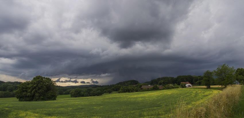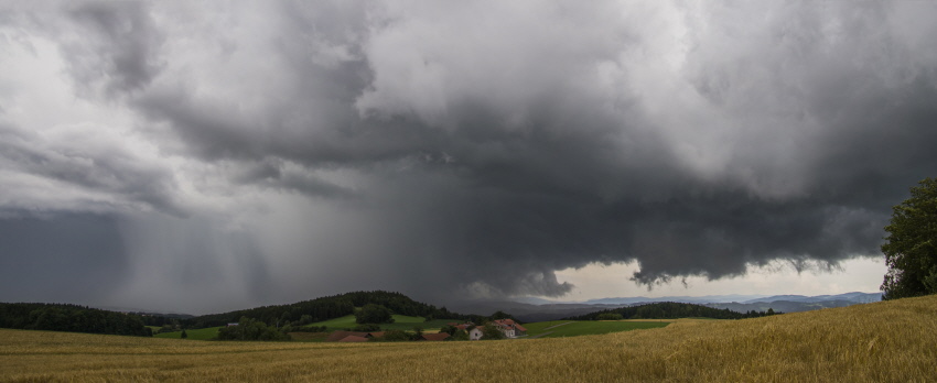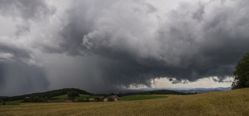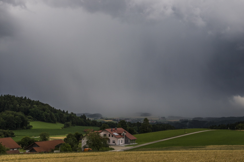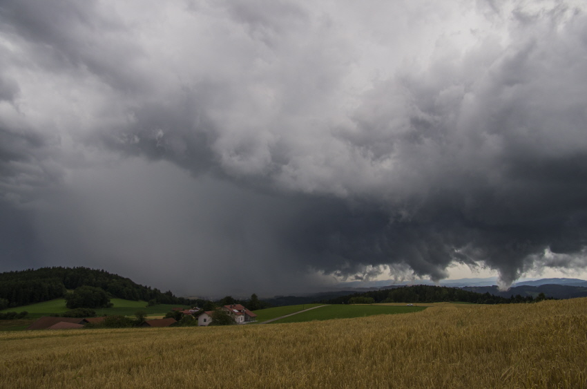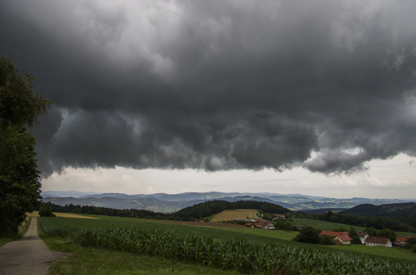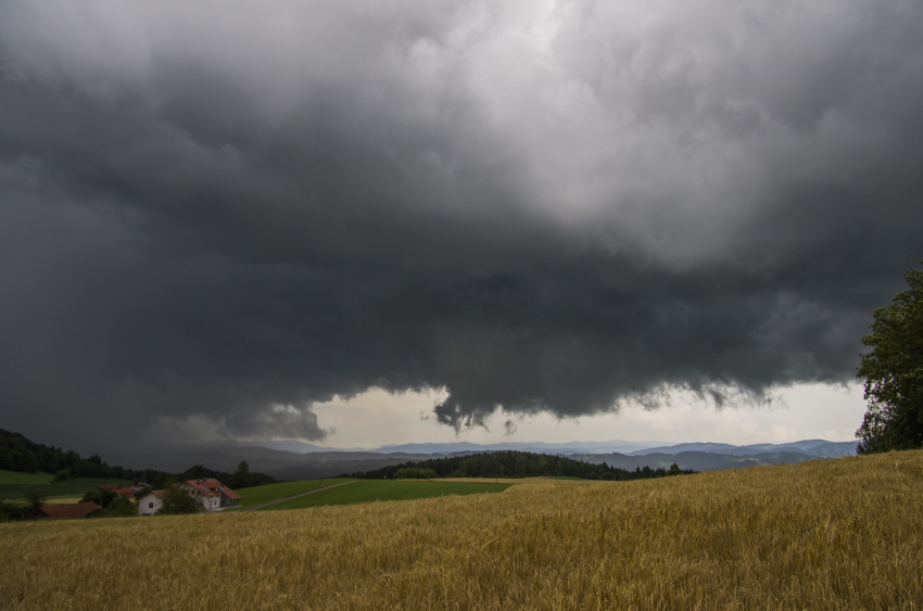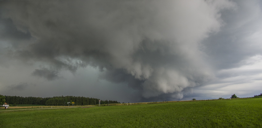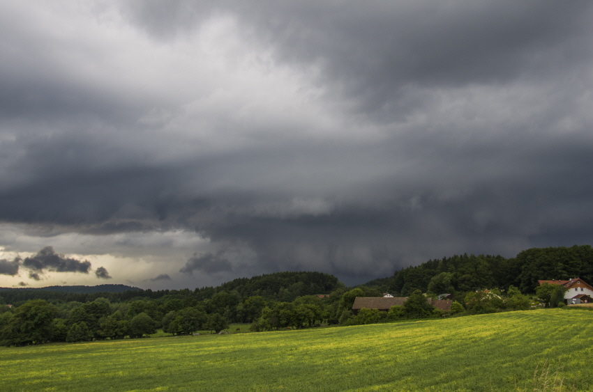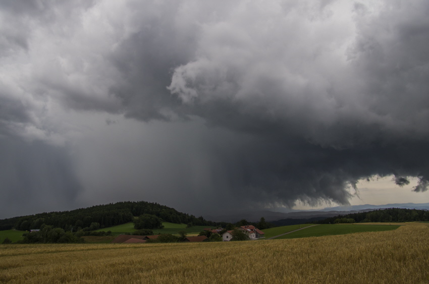 Für den WM-Finaltag war ja wieder mal was vorhergesagt, danach sahs aber vorerst nicht aus. Die Gewitterzellen entstanden und zerfielen sofort, des Chasers Alptraum eben^^ Immer am Radar auf der Suche nach einem stabilen Niederschlagskern, keimte dann Hoffnung westlich von Regensburg auf. Also rauf auf die Autobahn Richtung Westen, ich kam aber dann doch bloß bis Wörth an der Donau. Also rein in den Wald, und noch einige Kilometer Richtung Norden nach Falkenstein, damit ich dann das Südende derwischen konnte Der Beobachtungsstandort war aber ned so toll, da könnte man schon verzweifeln bein den vielen Hügeln im Bayerwald.....