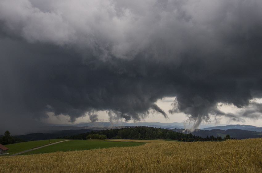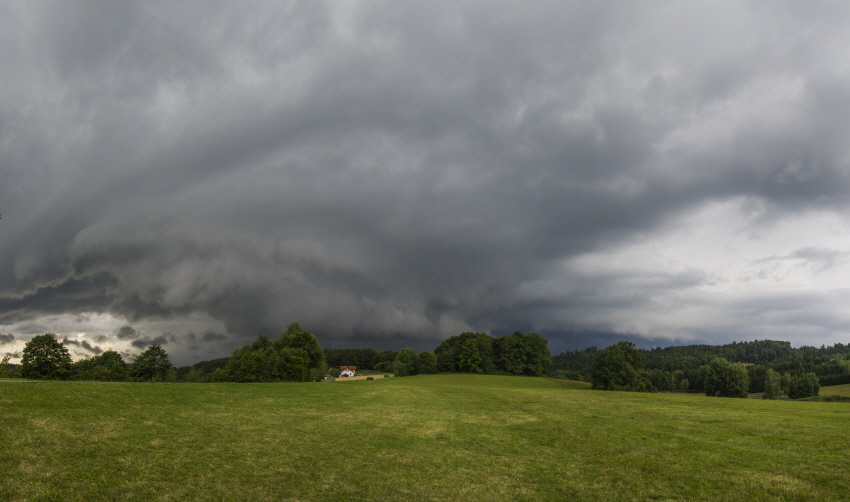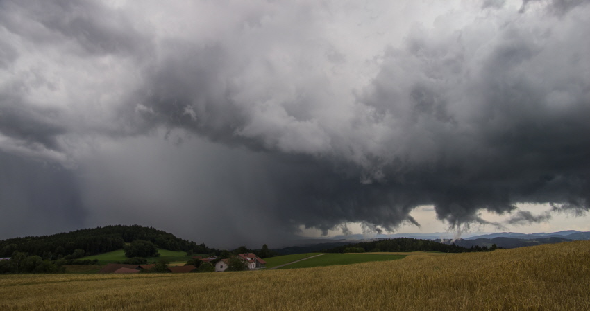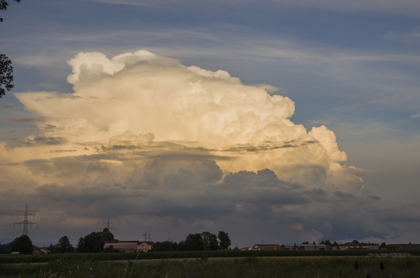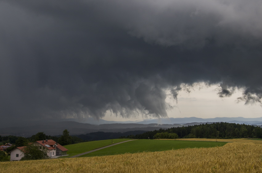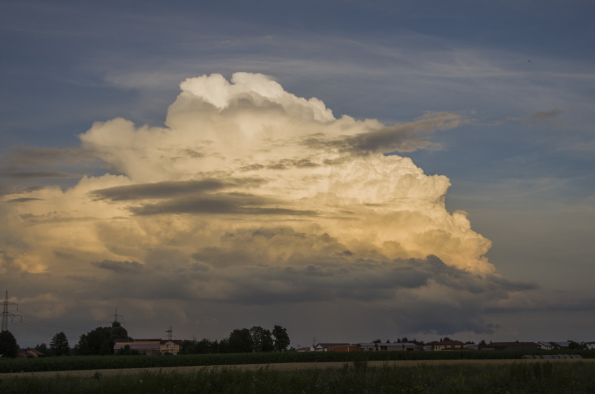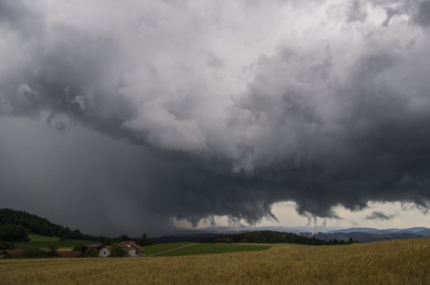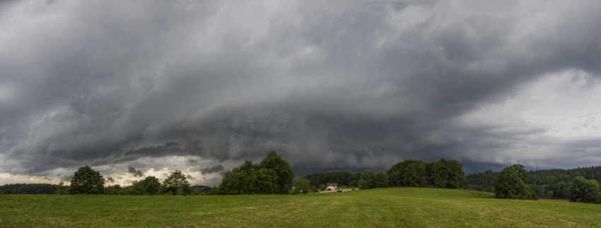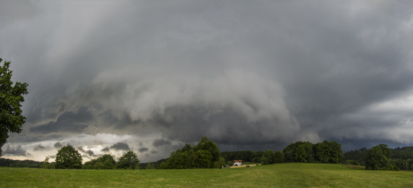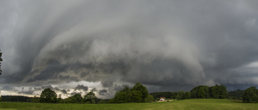 Für den WM-Finaltag war ja wieder mal was vorhergesagt, danach sahs aber vorerst nicht aus. Die Gewitterzellen entstanden und zerfielen sofort, des Chasers Alptraum eben^^ Immer am Radar auf der Suche nach einem stabilen Niederschlagskern, keimte dann Hoffnung westlich von Regensburg auf. Also rauf auf die Autobahn Richtung Westen, ich kam aber dann doch bloß bis Wörth an der Donau. Also rein in den Wald, und noch einige Kilometer Richtung Norden nach Falkenstein, damit ich dann das Südende derwischen konnte Der Beobachtungsstandort war aber ned so toll, da könnte man schon verzweifeln bein den vielen Hügeln im Bayerwald.....